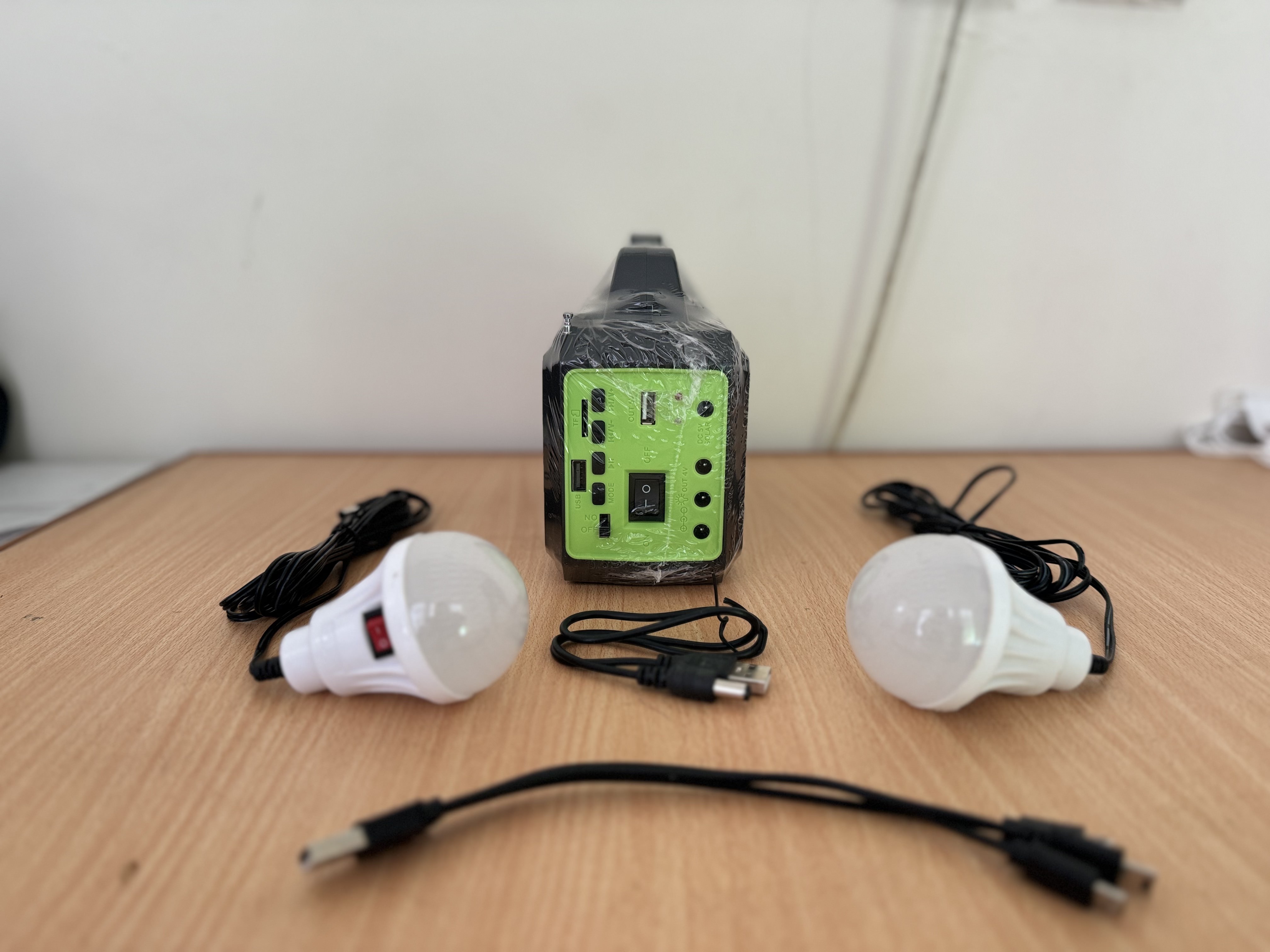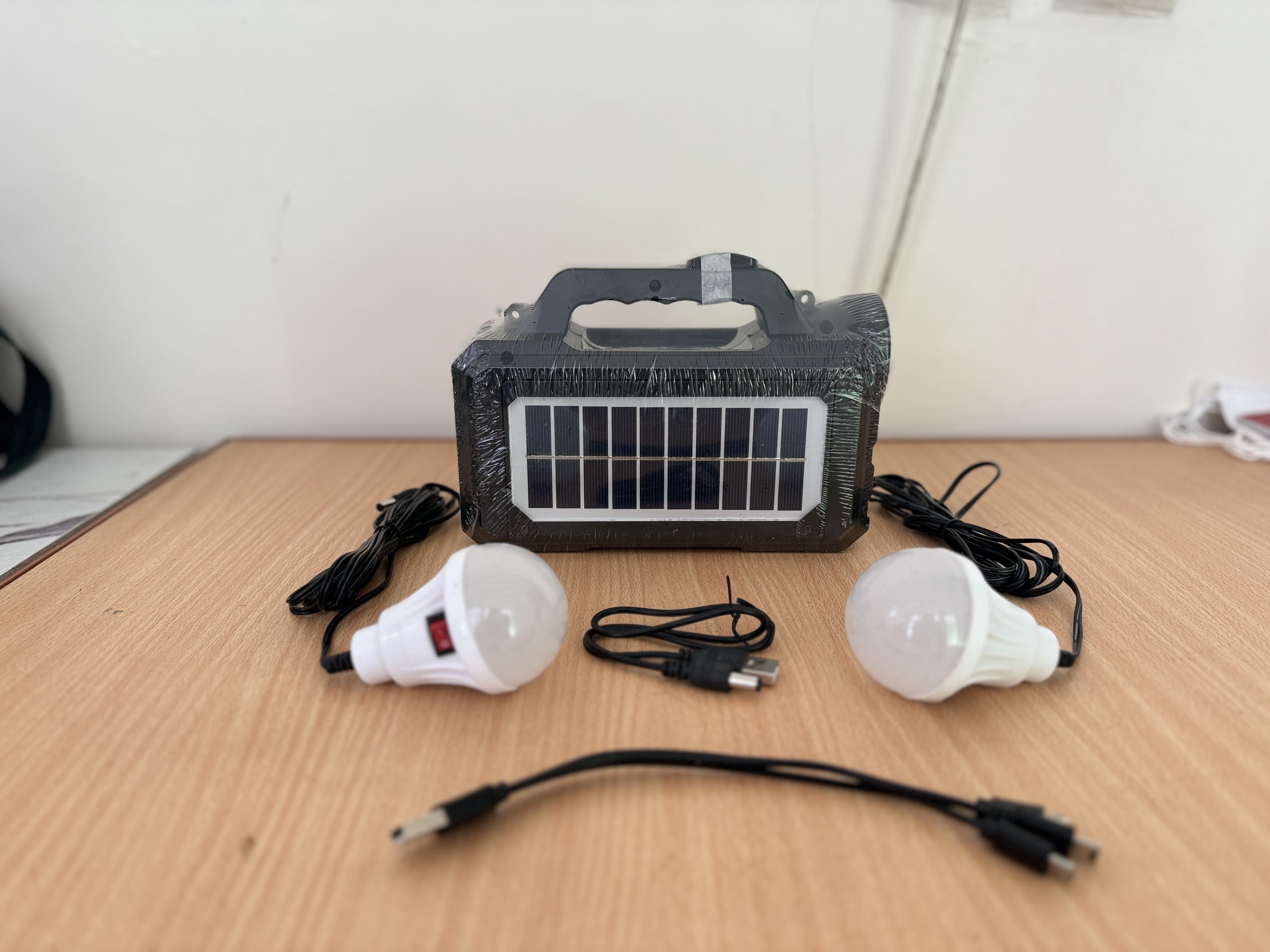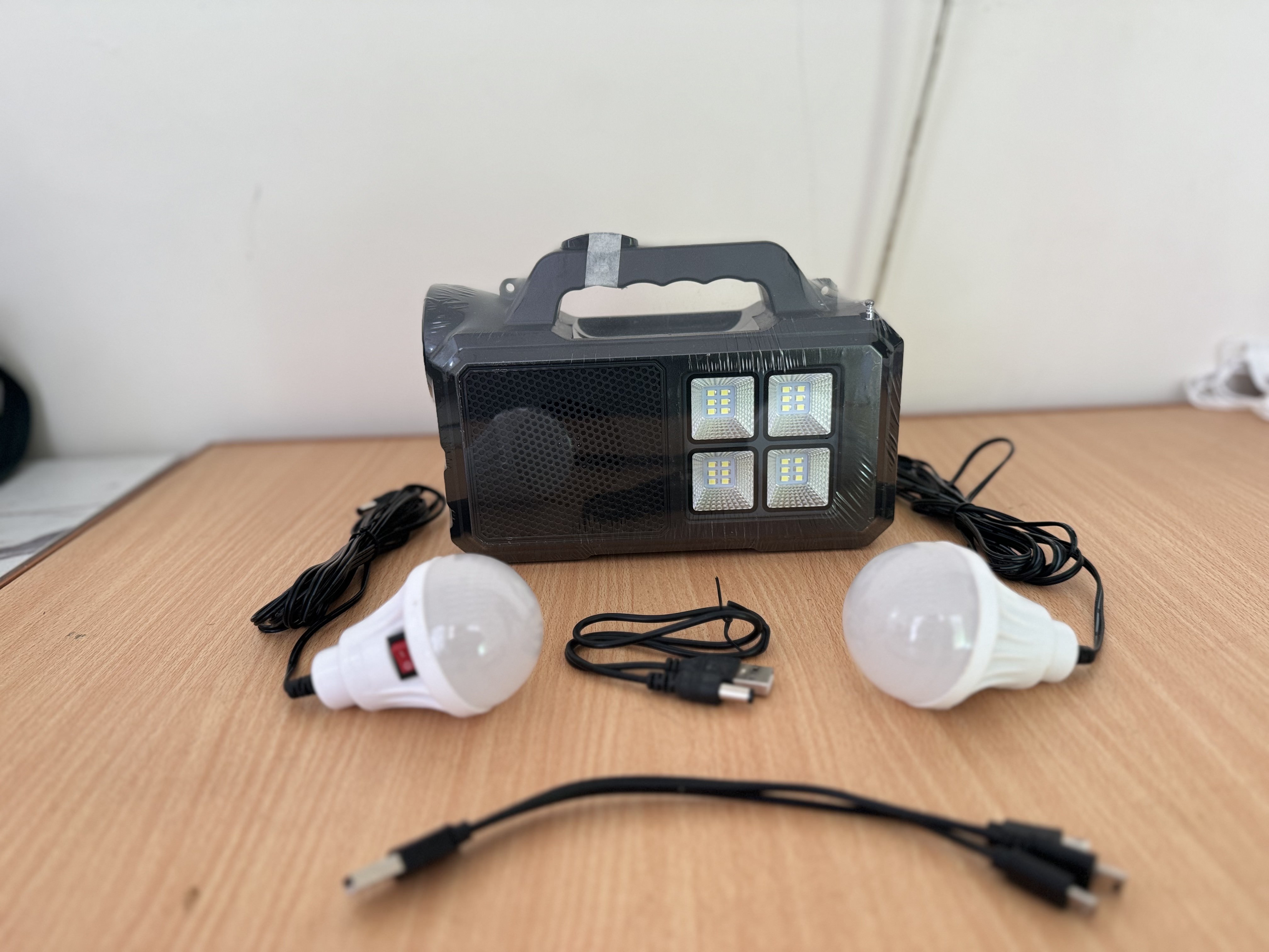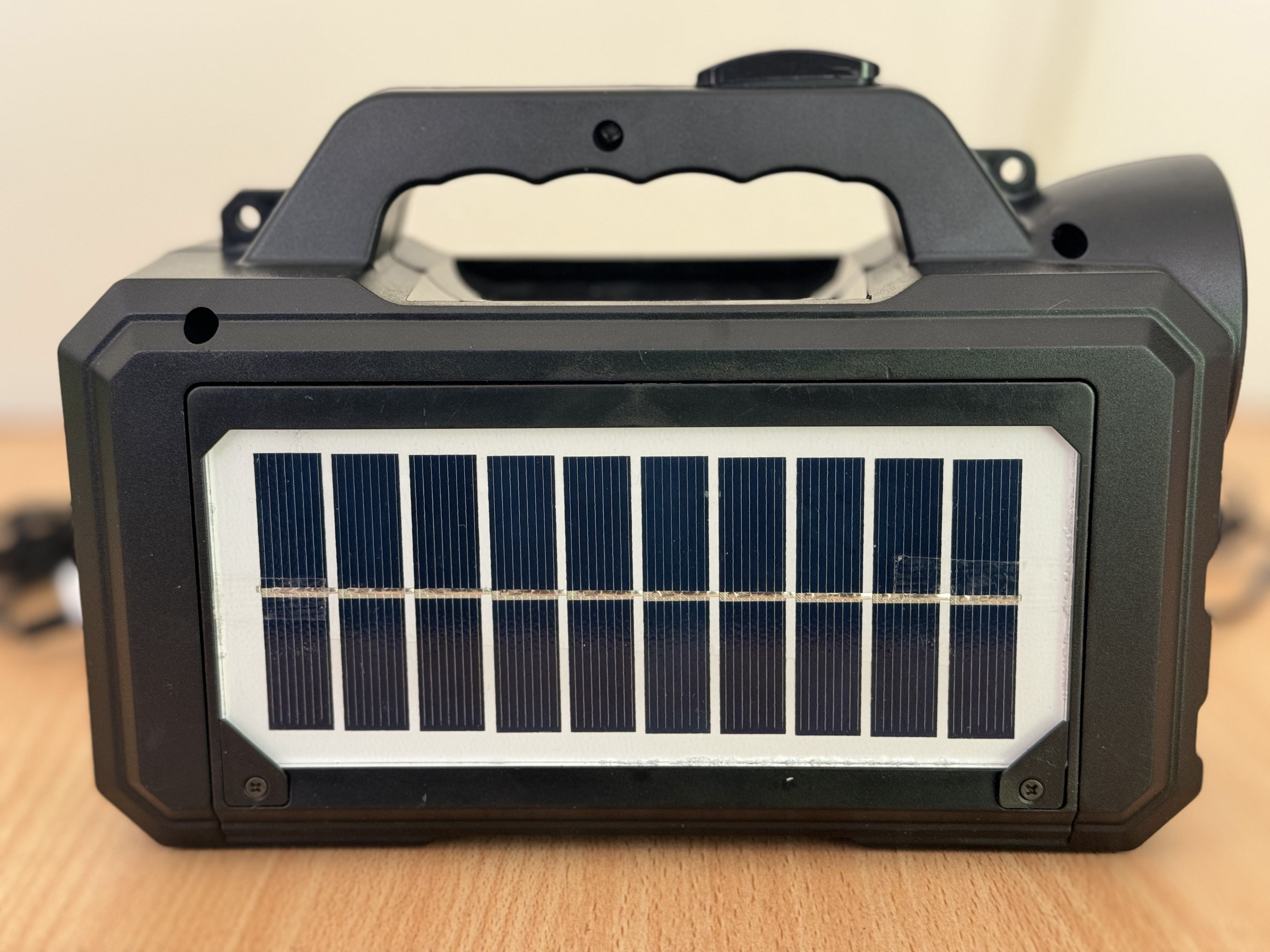 بهره برداری از انرژی های نو و پاک روز به روز در حال افزایش است که خود موجب بهتر شدن شرایط زیست در کره زمین می شود . یکی از این گونه های انرژی پاک ، انرژی خورشیدی است که به دو روش تولید می شود که یکی در نیروگاههای حرارتی خورشیدی و دومین روش ، تولید برق در نیروگاه های با پنل های خورشیدی می باشد . در ابعاد کوچکتر می توان از این انرژی با پنل خورشیدی بهره گرفته و انرژی الکتریکی تولید شده را در باتری های شارژی ذخیره کرد و به هنگام نیاز ، از آن بهره گرفت . سیستم خورشیدی GDPLUS مدل GD-8077FM یکی از این دستگاهها است که از تکنولوژی آلمانی بهره میبرد. دستگاه اصلی با 2 منبع روشنایی بر روی خود که یک عدد بصورت چراغ قوه LED در مقابل و یک منبع بصورت LED چهار عددی در قسمت جانبی آن قرار دارد ، تشکیل شده است .قابلیت اتصال با بلوتوث به گوشی همراه را دارد. پنل خورشیدی روی خود دستگاه قرار دارد که این امر موجب حمل راحت آن میشود همچنین قابلیت اتصال پنل بیرونی 5 ولت دارد. 2 عدد لامپ ال ای دی با سیم بلند4 متری و کلید ، در جعبه دستگاه قرار دارد که با اتصال به دستگاه اصلی می توان از روشنایی آن برخوردار شد البته دستگاه قابلیت اتصال 3 عدد لامپ را دارد . در پشت دستگاه یک پورت USB قرار دارد که می توان به کمک آن موبایل را شارژ کرده و بعنوان پاور بانک از آن بهره گرفت که قابلیت شارژآیفون رو هم داره . کابل شارژ چند کاره نیز در جعبه قرار دارد تا بتوان بیشتر دستگاههای مبایل رو شارژ کرد . با ورودی پنل خورشیدی DC 5V میتوان شارژ را انجام داد که حدود 8 تا 10 ساعت طول میکشد.باتری داخلی 3.7 V با 4000 MAH دارد.چراغ LED مقابل 150LM و چراغهای LED کناری 500LM میباشد.