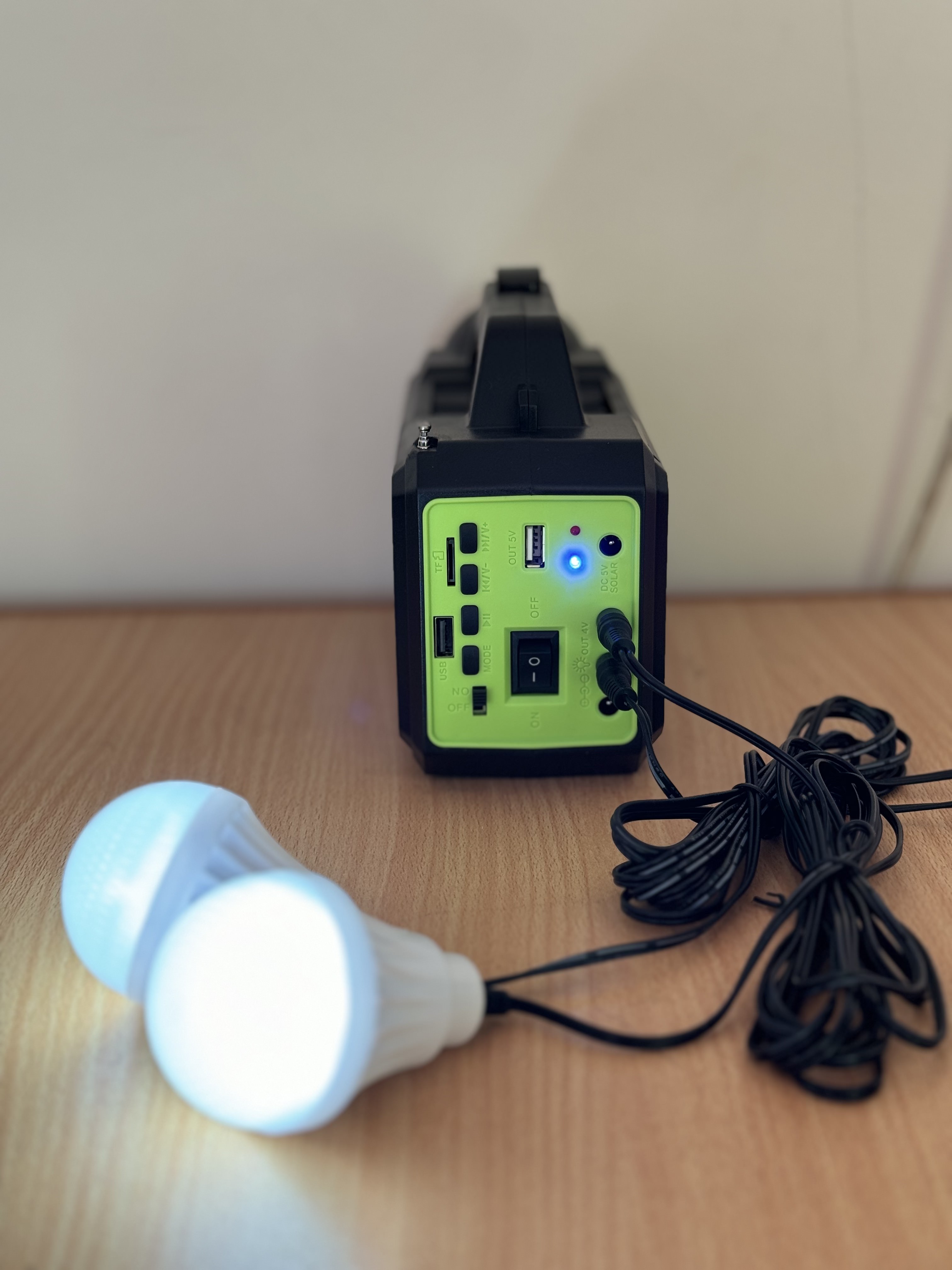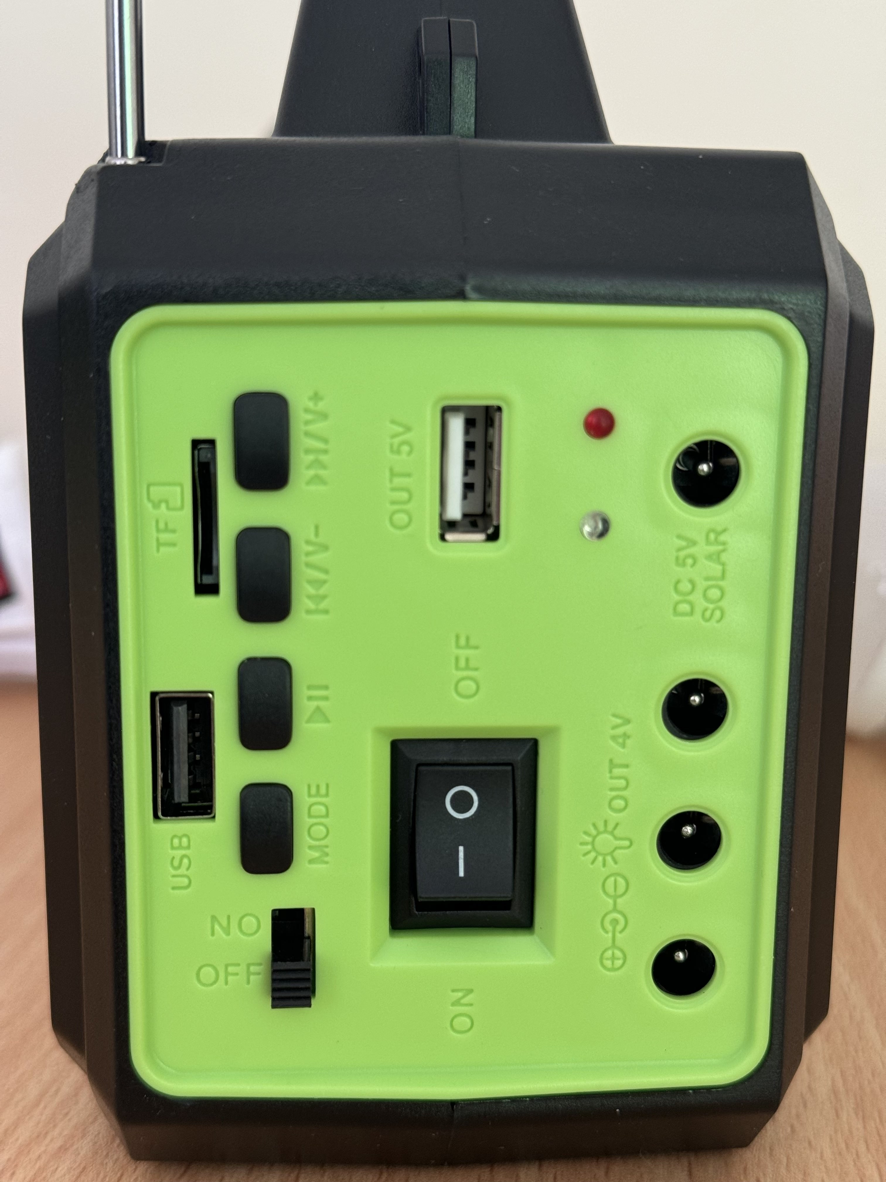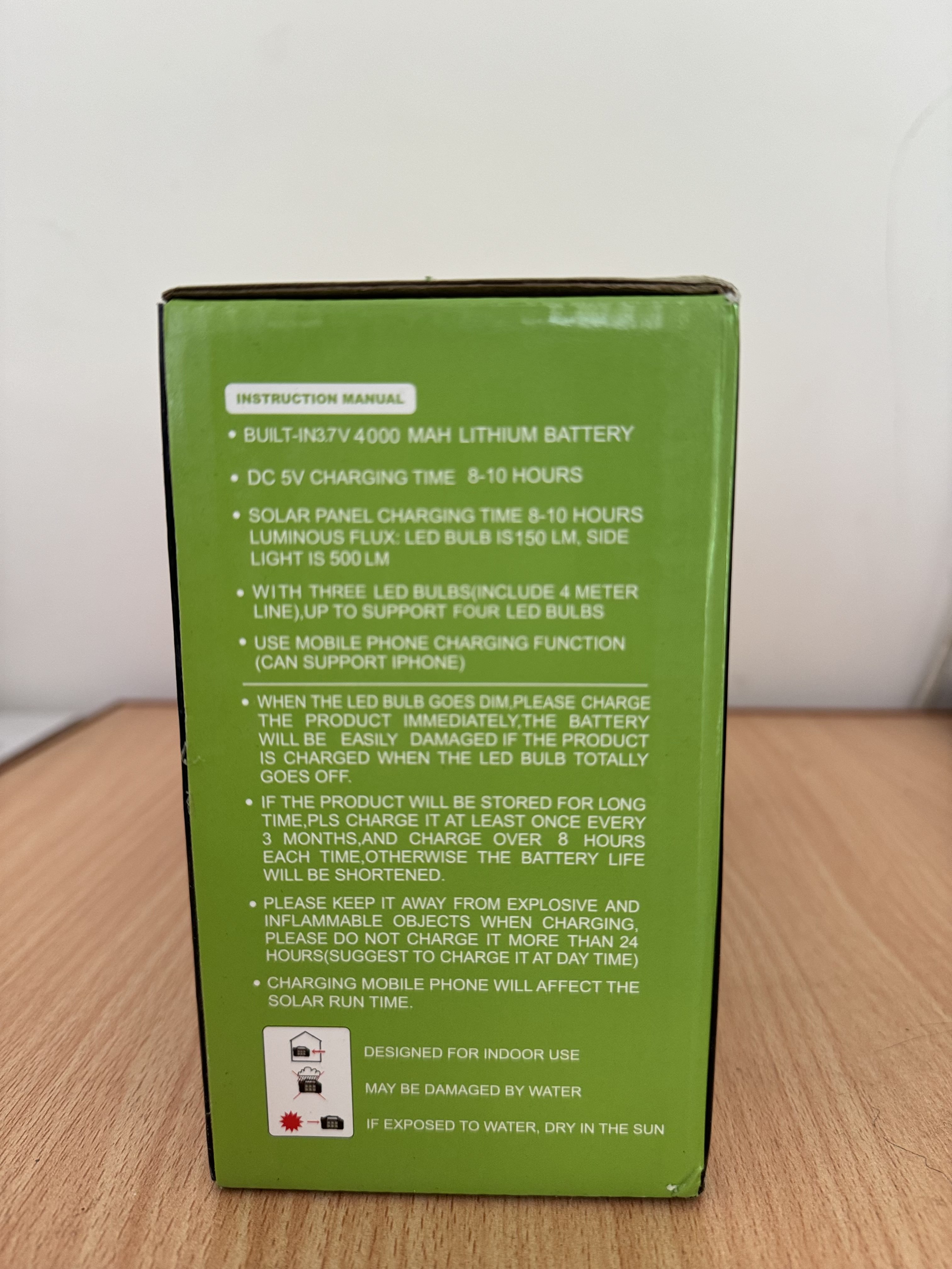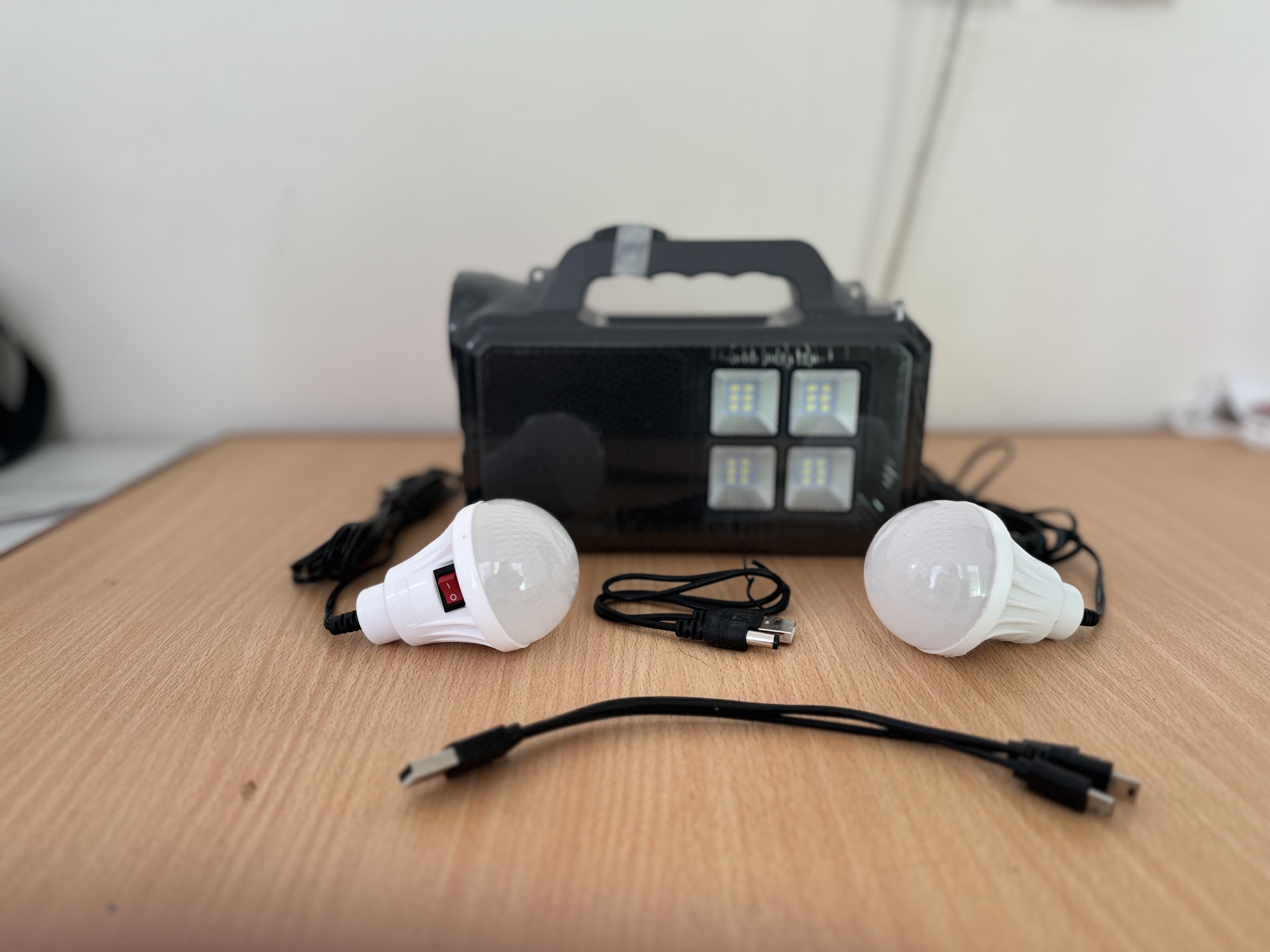 بهره برداری از انرژی های نو و پاک روز به روز در حال افزایش است که خود موجب بهتر شدن شرایط زیست در کره زمین می شود . یکی از این گونه های انرژی پاک ، انرژی خورشیدی است که به دو روش تولید می شود که یکی در نیروگاههای حرارتی خورشیدی و دومین روش ، تولید برق در نیروگاه های با پنل های خورشیدی می باشد . در ابعاد کوچکتر می توان از این انرژی با پنل خورشیدی بهره گرفته و انرژی الکتریکی تولید شده را در باتری های شارژی ذخیره کرد و به هنگام نیاز ، از آن بهره گرفت . سیستم خورشیدی GDPLUS مدل GD-8077FM یکی از این دستگاهها است که از تکنولوژی آلمانی بهره میبرد. دستگاه اصلی با 2 منبع روشنایی بر روی خود که یک عدد بصورت چراغ قوه LED در مقابل و یک منبع بصورت LED چهار عددی در قسمت جانبی آن قرار دارد ، تشکیل شده است .قابلیت اتصال با بلوتوث به گوشی همراه را دارد. پنل خورشیدی روی خود دستگاه قرار دارد که این امر موجب حمل راحت آن میشود همچنین قابلیت اتصال پنل بیرونی 5 ولت دارد. 2 عدد لامپ ال ای دی با سیم بلند4 متری و کلید ، در جعبه دستگاه قرار دارد که با اتصال به دستگاه اصلی می توان از روشنایی آن برخوردار شد البته دستگاه قابلیت اتصال 3 عدد لامپ را دارد . در پشت دستگاه یک پورت USB قرار دارد که می توان به کمک آن موبایل را شارژ کرده و بعنوان پاور بانک از آن بهره گرفت که قابلیت شارژآیفون رو هم داره . کابل شارژ چند کاره نیز در جعبه قرار دارد تا بتوان بیشتر دستگاههای مبایل رو شارژ کرد . با ورودی پنل خورشیدی DC 5V میتوان شارژ را انجام داد که حدود 8 تا 10 ساعت طول میکشد.باتری داخلی 3.7 V با 4000 MAH دارد.چراغ LED مقابل 150LM و چراغهای LED کناری 500LM میباشد.